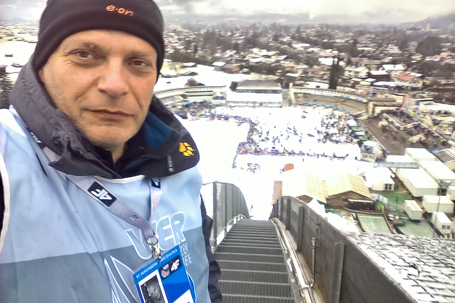 Paul Eschbach als akkreditierter Pressefotograf bei der Vierschanzen-Tournee in Garmisch-Partenkirchen.