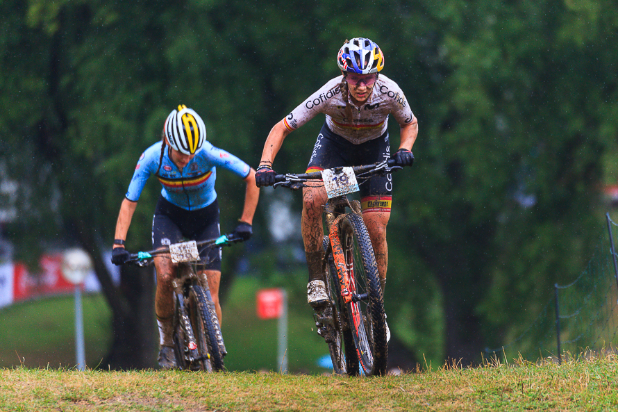 PE1D4330_900 Published 21. August 2022 at 890 × 593 in Regen, Matsch, nasse Steine, steile Auf und Abfahrten – MTB Europameisterschaft im Olympiapark ← Previous Next →