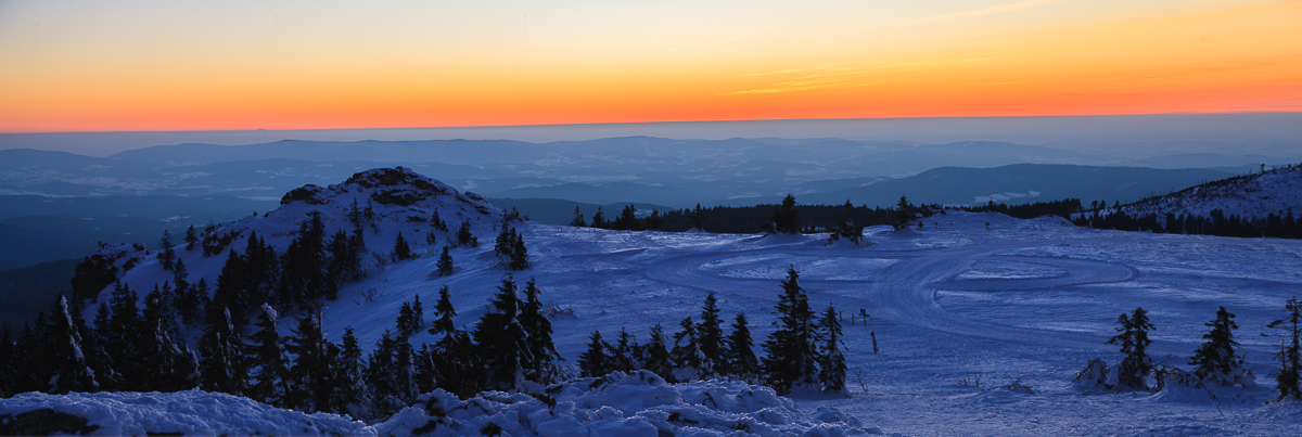 Published 14. Februar 2023 at 1200 × 403 in Berggipfel am Großen Arber im letzten Tageslicht im Bayerischen Wald