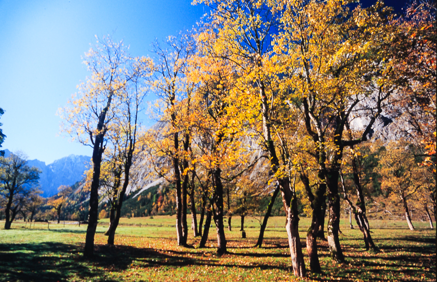 ZY5M5724 Published 2. November 2023 at 890 × 574 in Großer Ahornboden im herbstlichen Karwendel – Analoge Diapositive ← Previous