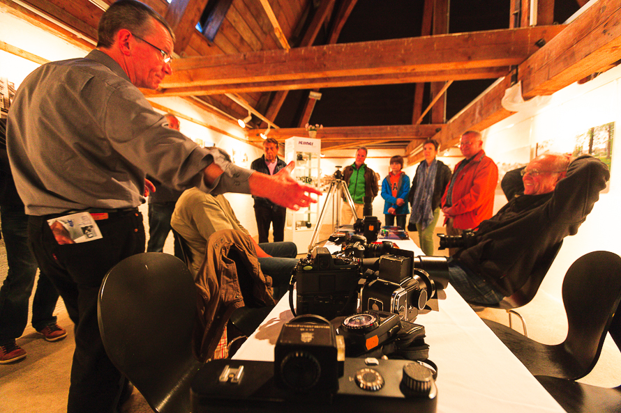 ZY5M3053_900 Published 24. Januar 2025 at 890 × 593 in Der Dachauer Wasserturm als künstlerischer Ausstellungsraum in der Künstlerstadt ← Previous Next → Andreas Pirchmoser erklärt auf der Ausstellung zu Paul Sessner die Fototechnik der vergangenen Jahrzehnte.