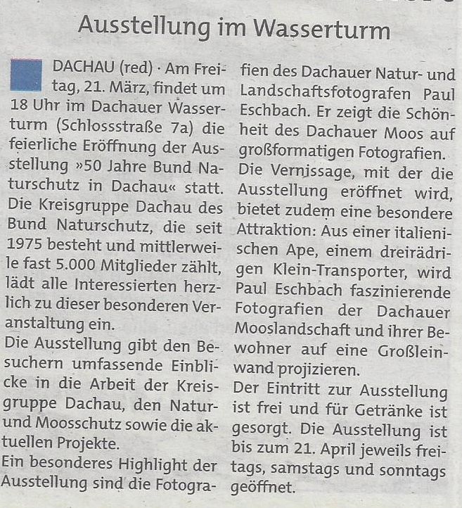Dachauer Kurier_Ausstellung Wasserturm 20250315 Published 16. März 2025 at 657 × 722 in Presseschau zum Projekt: Dachauer Moos Next →