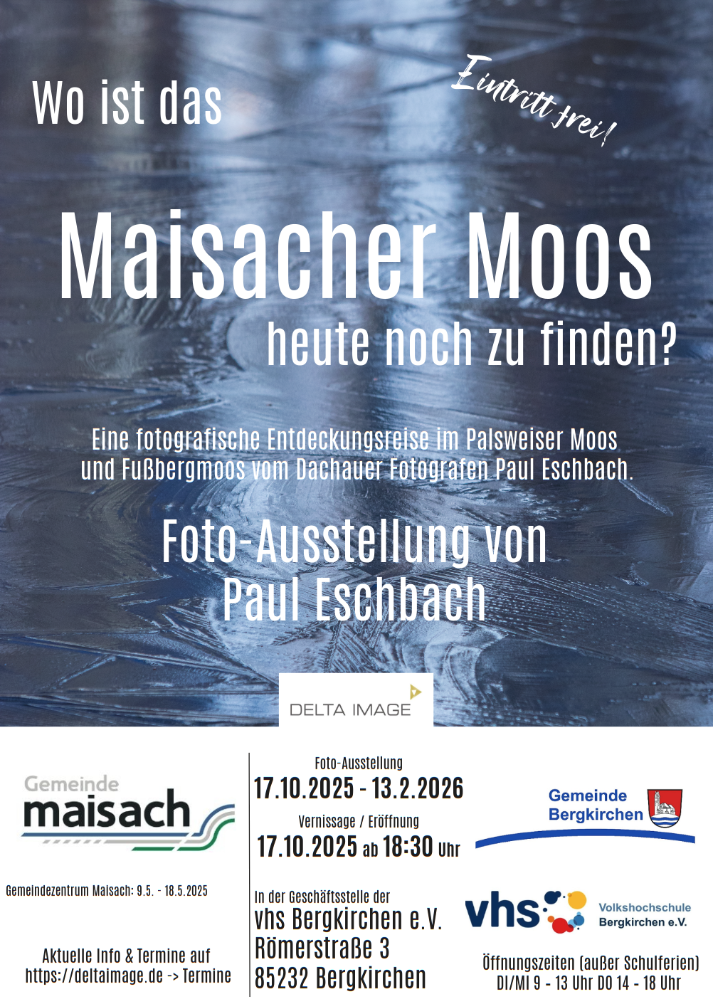 Plakat_Ausstellung_Bergkirchen_20250912_1200 Published 12. September 2025 at 1002 × 1411 in Foto-Ausstellung in Bergkirchen: Palsweiser Moos im Maisacher Moos – Paul Eschbach – 17.10.2025 – 13.2.2026 ← Previous