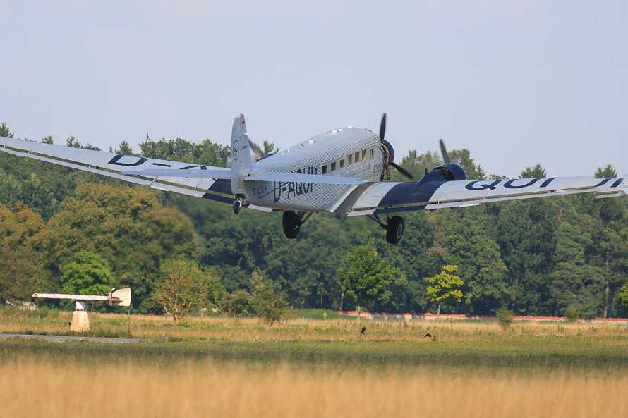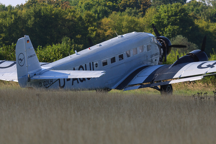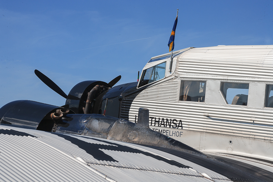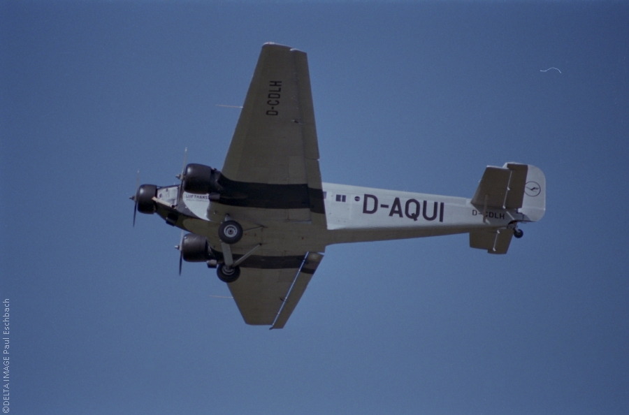 Auf den Bilder ist die Ju 52 erst ein Jahr alt – im Jahr 1986 wurde die Maschine komplett restauriert wieder in Betrieb genommen. Die Lufthansa Ju unterscheidet sich in einem Punkt ganz wesentlich von den Ju 52 der JU-Air – hier wurden die Flugmotore gegen nicht originale Pratt & Whitney Wasp mit Dreiblattpropeller getauscht. Die JU-AIR fliegen noch mit den originalen BMW 132 Sternmotoren.