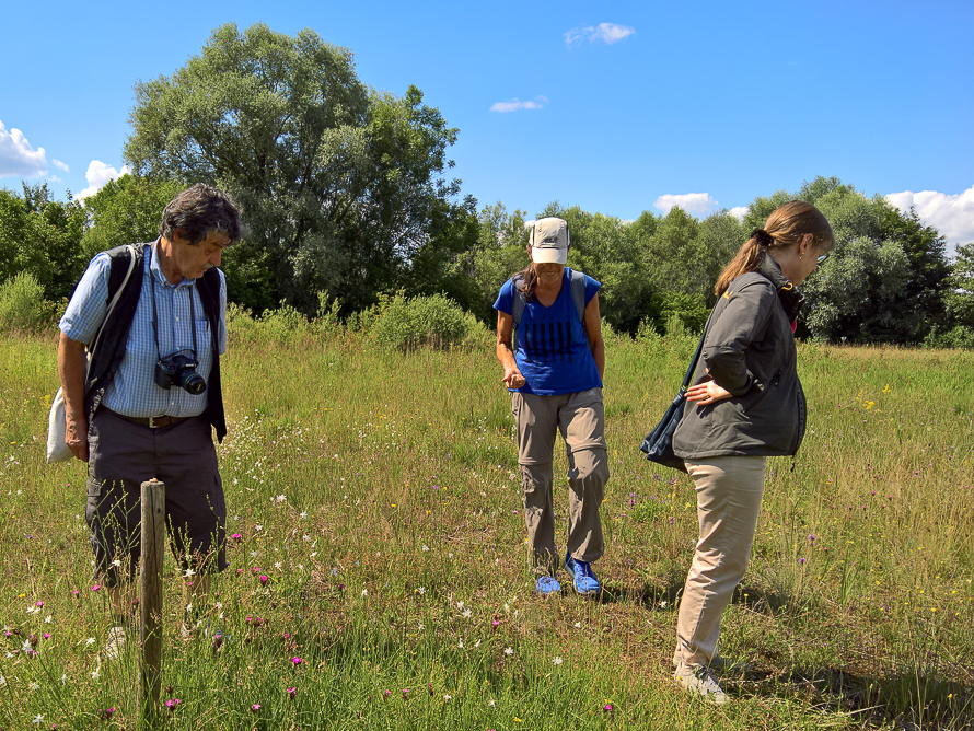 Es macht auch mir Freude, mit welcher inneren Begeisterung die Biologen und Fachleute sich über die Pflanzen und Blumen machen. Der eine läuft noch ganz klassisch mit dem Bestimmungsbuch umher. Ein anderer mit einem Notitzblock und notiert sich Arten und Entdeckungen.