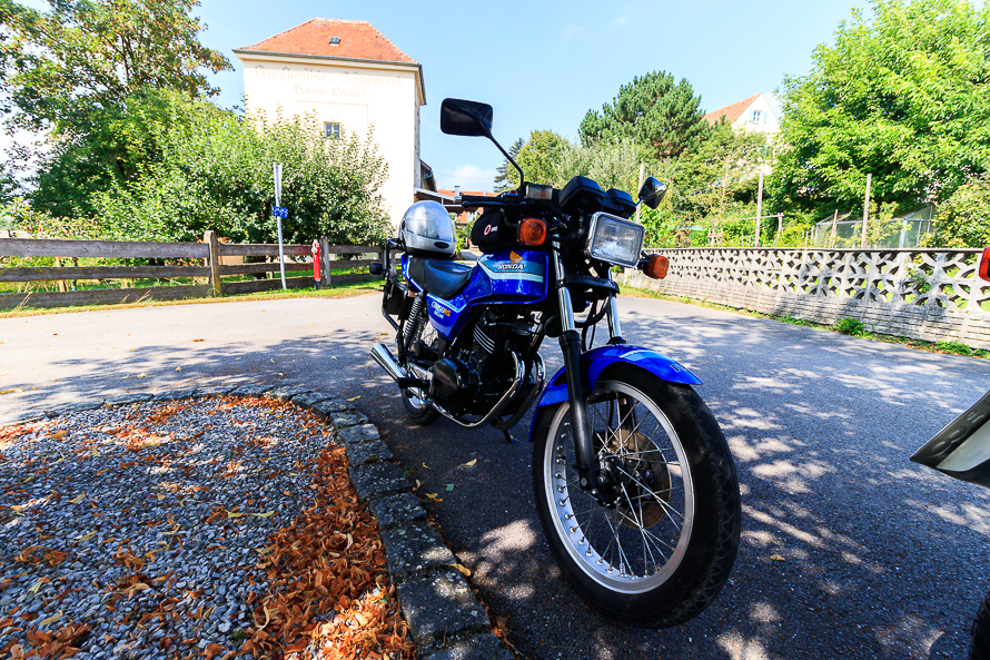 Mit Andi Prichmoser und seiner BMW R 100 G/S stehen zwar zwei vollkommen unterschiedliche Motorräder am Start – wir beide wollen aber das beschauliche genießen und sehen viel lieber als Tempo und Geschwindigkeit. Mit meiner (kleinen) 250er glaubt man mir das wohl unbesehen.