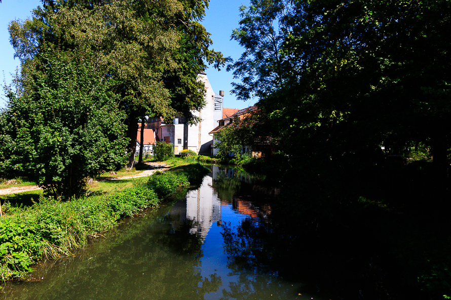 Auffällig ist das barocke Wohnhaus des Müllers, die Mühle wurde im 30-jährigen Krieg zerstört und dann barock wieder aufgebaut. Die Gebäude stehen unter Denkmalschutz – sind aber Privatgelände und das wollen wir auch respektieren.