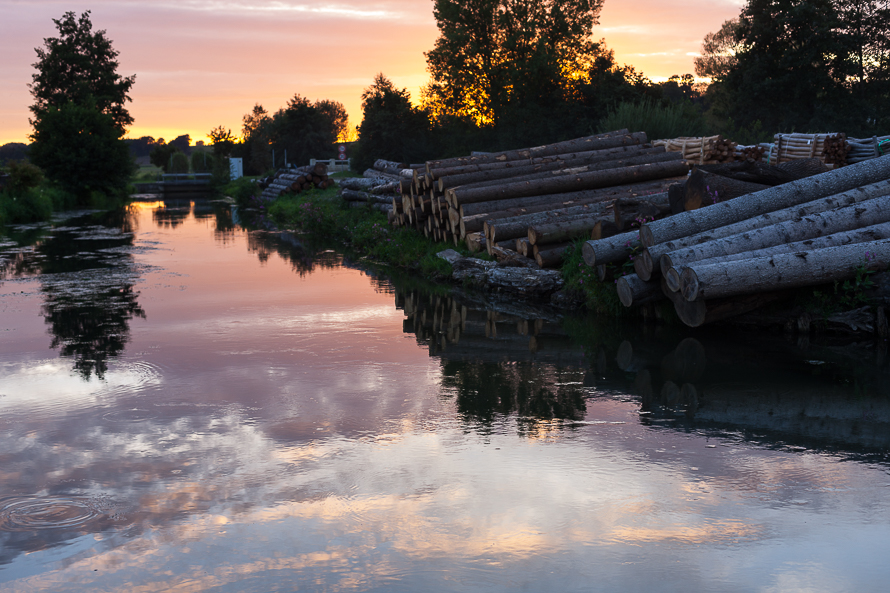 Das Mühlwasser an der Untermoosmühle wird auch heute noch für den Antrieb der Sägemühle – über die Erzeugung von elektrischem Strom verwendet. Ganz malerisch besteht noch der Oberlauf zur Sägemühle mit dem hier gelagerten Sägeholz, ein perfekter Ort um auf die Spiegelungen und Reflexionen zu warten und ins Bild umzusetzen.