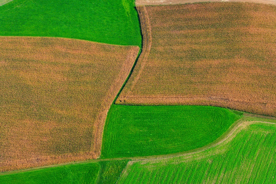 - Europa, Deutschland, Bayern, Landwirtschaft, Acker, Tracktor, Feldarbeit, Luftbild